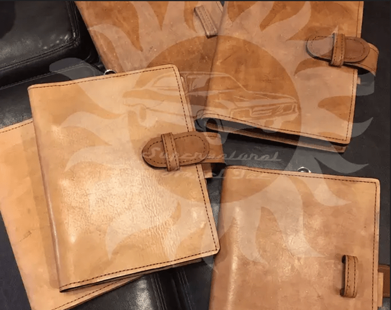 Supernatural Angel LLC is owned by Jan Ashmore. Jan handcrafts stunning leather creations, including John Winchester’s leather journal, map pouch, Sam’s syringe case, Bobby’s flask holder, hex bags, and more. Check out Jan’s Etsy shop or Supernatural Angel’s website for availability.