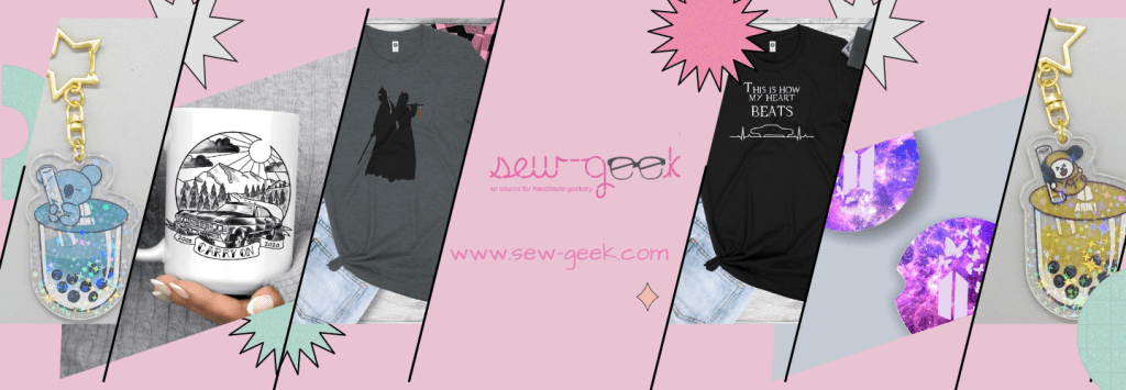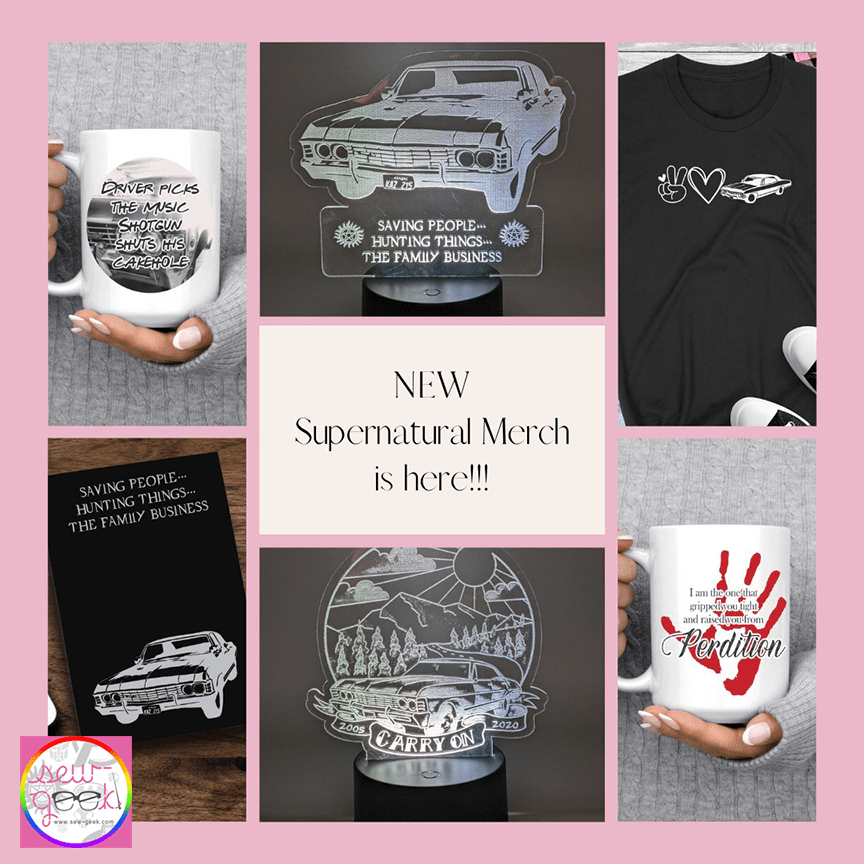 Your Source for handmade Geekery: art pieces, crafts, jewelry, fashions, drinkware, and more. Supernatural, K-Pop, and other fandoms. A portion of Sew-Geek’s proceeds is donated to charity each month. Sew-Geek ships World Wide! Shop now on Sew-Geek’s website or Facebook page. Owner: Claudia Drinovsky.