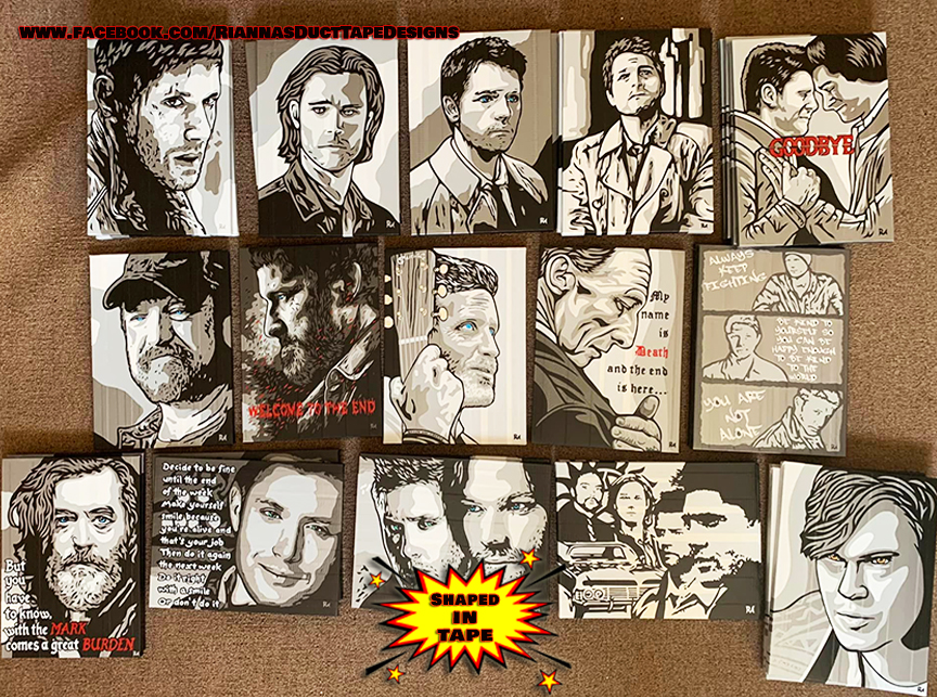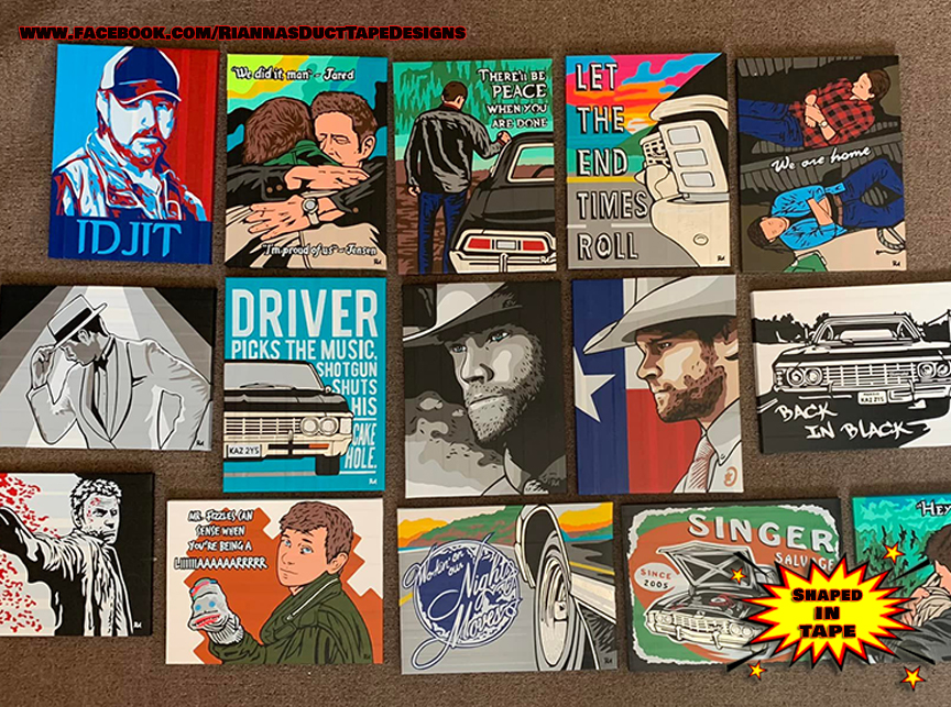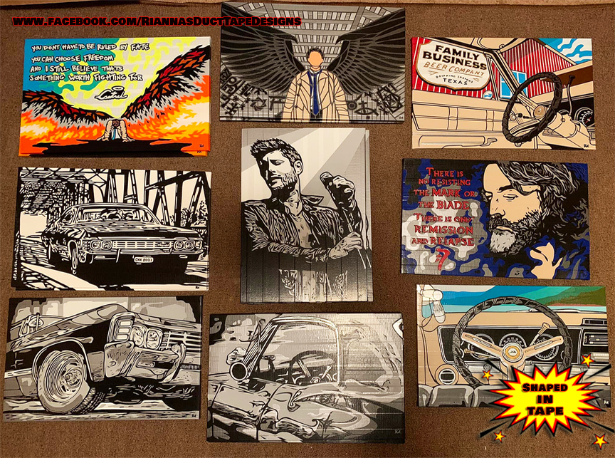 Who knew you could create works of art from colored tape and X-acto knives? Artist Rianna Melton creates the most amazing pieces, based not only on Supernatural, but most any fandom or subject. Rianna takes commissions, as her time permits. Check out Rianna’s Facebook page for contact information and more examples of her duct tape artistry.